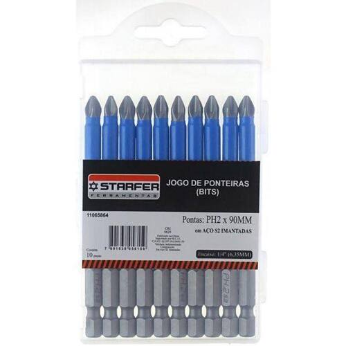 Jogo 10 Bits Ponta Phillips 2 para Parafusadeira em Aço Cromo S2 de Alta Qualidade