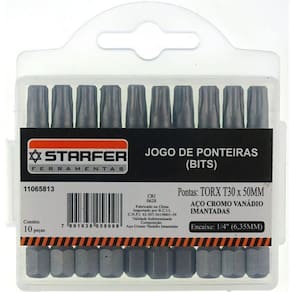este aço é utilizado para gerar uma resistência melhor para as ferramentas; para ou doméstico; utilizado em parafusadeiras para apertar ou soltar parafusos. - encaixe = 1/4" 6,35mm ; - comprimento = 50mm. - modelo da ponta = torx 30