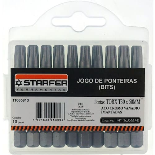 Jogo 10 bits ponta torx 30 para parafusadeira em aço cromo vanádio de alta qualidade