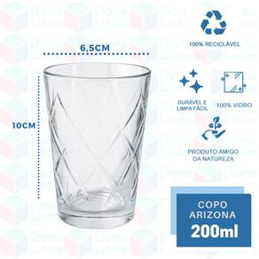 Feito de vidro de alta qualidade, o Arizona é resistente e durável, garantindo segurança e longevidade no uso. Sua capacidade de 200ml é ideal para servir bebidas como sucos, refrigerantes, água e até mesmo coquetéis, proporcionando uma experiência agradável e sofisticada.