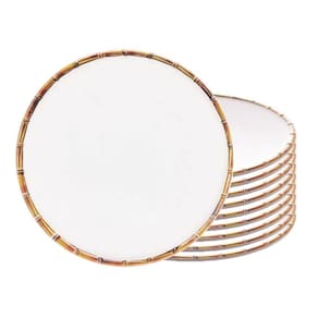 Jogo 10 Prato Sobremesa Borda de Bambu Melamina Branco 22cm Wolff