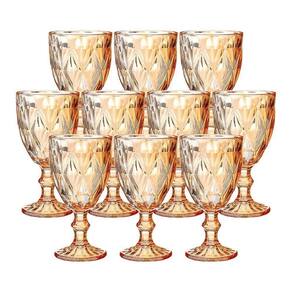 Jogo 10 Taças De Vidro Diamond Diamante âmbar Metalizado 300ml água Class Home