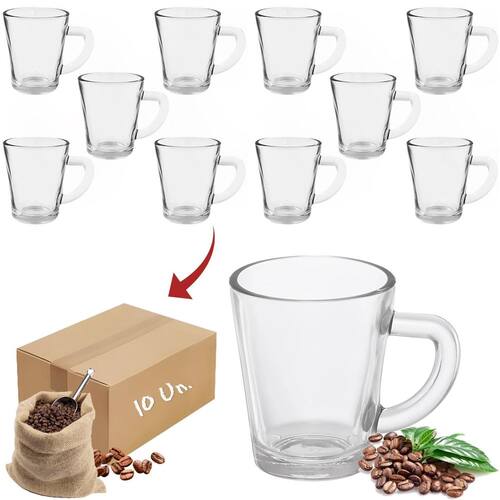 Jogo 10 xícaras de vidro café expresso chá 70ml resistente