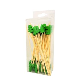 -02 Caixas com 50 Unidades Palito Aperitivo Decorado Pinheiro Natal Bambu 12cm