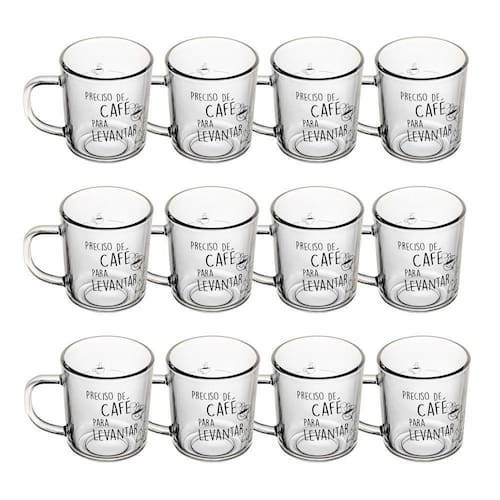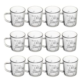 Jogo 12 Caneca de Vidro Preciso de Café para Levantar Lyor 200ml