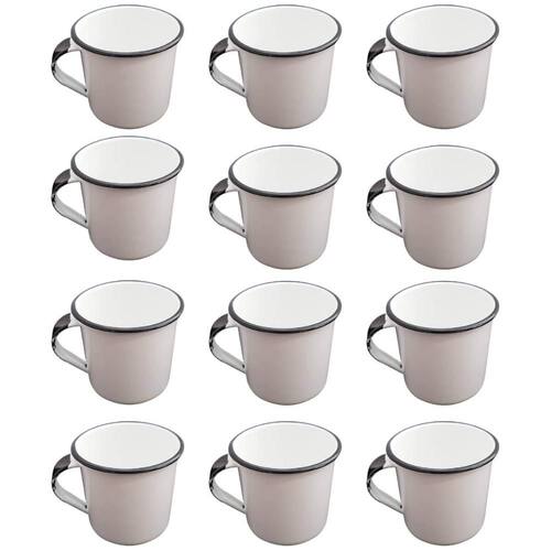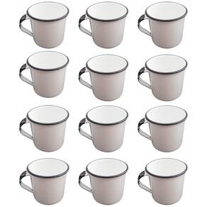 Jogo 12 Canecas Esmaltas Xicaras de Café Chá Brancas 400ml Caneca Agata Metallouça.