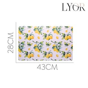 O lugar americano de plástico com estampa de limão siciliano traz uma atmosfera vibrante para a mesa, combinando tons de verde e amarelo. Com dimensões de 43x28cm, ele se adapta a diferentes tipos de mesa. Sua composição em plástico facilita a limpeza, tornando-o prático para o uso diário. Pode ser em diversas ocasiões, desde refeições informais até jantares.