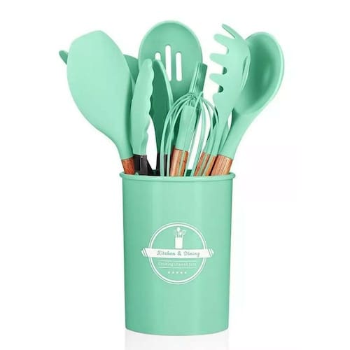 Um conjunto de 12 peças único, capaz de atender a todas as suas necessidades na cozinha. Utensílios resistentes ao calor, antibacteriano, livres de cola, atóxicos, antiaderentes, fáceis de limpar e armazenar. Os utensílios são totalmente livres de bpa.