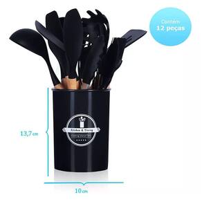 Jogo 12 peças utensílios silicone colher espátula Cor: preto Nome do produto: jogo 12 peças utensílios silicone colher espátula Conjunto 12 peças de utensilios de plastico de cozinha sendo 1 concha 2colheres 1 espatula reta 1 espatula pao duro