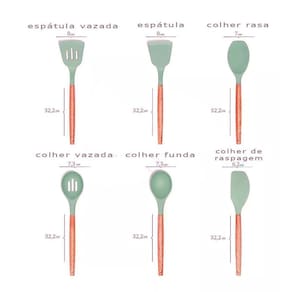Jogo 12 peças utensílios silicone colher espátula Cor: verde claro Nome do produto: jogo 12 peças utensílios silicone colher espátula Conjunto 12 peças de utensilios de plastico de cozinha sendo 1 concha 2colheres 1 espatula reta 1 espatula pao duro