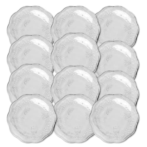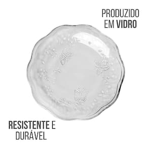 Jogo 12 Prato de Sobremesa Vidro New Butterfly Borboletas Flores 20cm Lyor