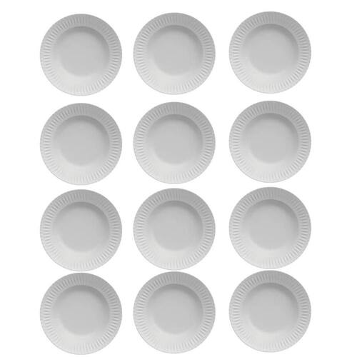 Jogo 12 Pratos Fundos em Porcelana Diamante Germer 23cm Branco Mesa Posta Restaurante
