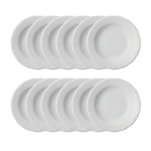 Jogo 12 Pratos Fundos Pomerode Brancos 24 cm Porcelana Schmidt