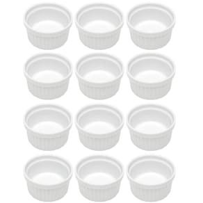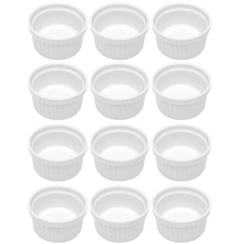 Garantia: 90 dias / Peso de cada: 0,096kg / Cor predominante: branco / Referência: 7798140285250 Conteúdo: 12 ramekins de porcelana; Dimensões de cada: 6,8cm (D) x 4cm (A); Dimensões da área de uso: 5,8cm (D) x 3,5cm (A); Capacidade de cada: 50ml; Modelo: Classic; Material: porcelana.