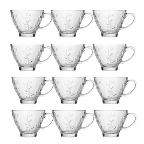 Jogo 12 Xícara de Chá de Vidro Flores Clear Lily 220ml Em Casa Tem