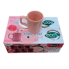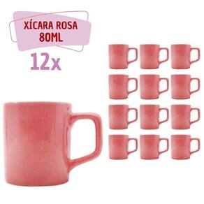 Jogo 12 Xícaras Café Cerâmica Colors 80mL Rosa Vibrante