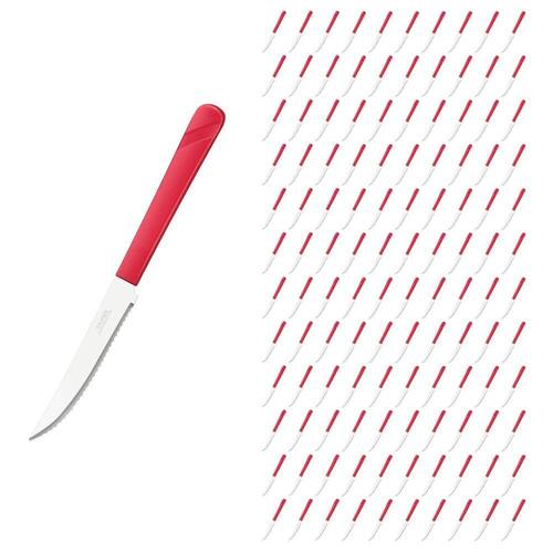 Conjunto de Facas As facas de mesa da linha Luna são um conjunto elegante e funcional para qualquer mesa de jantar. Com um cabo vermelho vibrante feito de plástico de alta qualidade, estas facas são confortáveis de segurar e fáceis de identificar em meio a outros utensílios de mesa. O aço inox de alta qualidade das lâminas garante que elas permaneçam afiadas por um longo tempo, enquanto o design elegante torna as facas uma adição atraente à sua coleção de utensílios de cozinha.