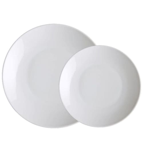 COMPOSIÇÃO: 6un de Pratos Rasos com 27cm de diametro e 6un Pratos para Sobremesa com 20cm de diametro sendo de Melamine Branca White. Esta MELAMINE não é Profissional, é um Prato bem Leve quase descartável. Ideal para Reunioes com muitas pessoas, camping. Não vai ao microondas e não vai a lava-louças.