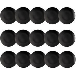 Jogo 15 Pratos para Sobremesa Redondos 18cm Preto Coza Doces Frutas Petiscos.