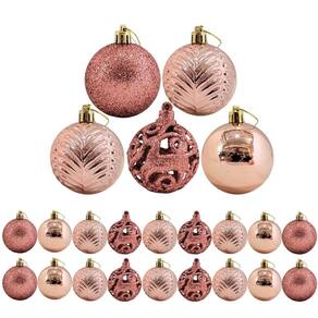 Kit 18 Bolas Natal Rosê Textura Palmeira Luxo 6cm