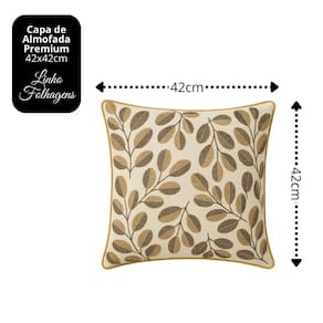 Almofada Decorativa Luxo Daphne 42x42cm – Folhagens Bege e Verde com Borda Aveludada + Enchimento em Fibra de Silicone