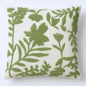 Almofada Decorativa Luxo Garden 42x42cm – Tecido Premium Creme e Verde com Enchimento em Fibra de Silicone