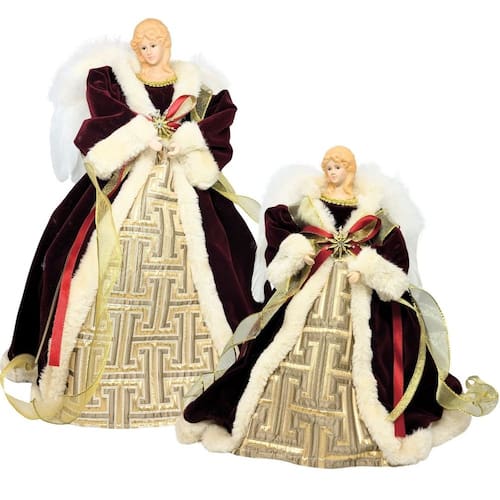 Kit 2 Anjos Decorados Natal Ponteira Veludo Vinho Luxo