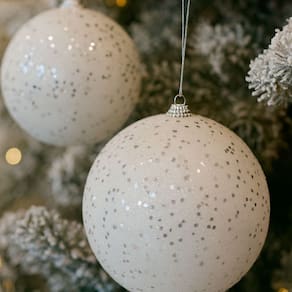 Transforme sua árvore de Natal com elegância e sofisticação com este jogo de 2 bolas de Natal brancas em glitter e lantejoulas. Cada bola possui 12cm de diâmetro, tamanho ideal para árvores médias e grandes, proporcionando um destaque especial e luxuoso à decoração natalina.