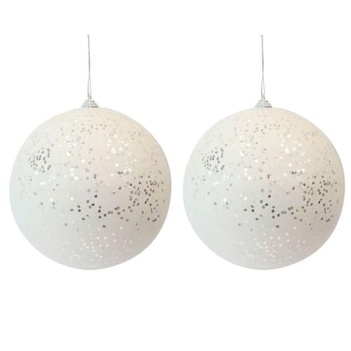 Jogo com 2 Bolas de Natal Brancas em Glitter e Lantejoulas 12cm Luxo