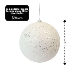 Transforme sua árvore de Natal com elegância e sofisticação com este jogo de 2 bolas de Natal brancas em glitter e lantejoulas. Cada bola possui 12cm de diâmetro, tamanho ideal para árvores médias e grandes, proporcionando um destaque especial e luxuoso à decoração natalina.