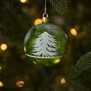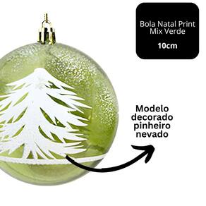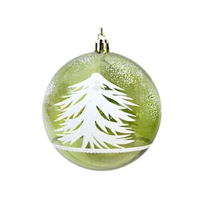 Bola de Natal Decorada Verde Luxo Translúcida com Estampa de Pinheiro e Neve – 10cm