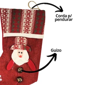 Com 35cm de altura x 20cm de largura, é ideal para ser pendurada em lareiras, portas, janelas, árvores ou paredes, já que acompanha cordão para pendurar. Além de ser um enfeite encantador, também pode ser utilizada para guardar doces, balas, bombons ou pequenos presentes, agregando funcionalidade à sua decoração natalina.