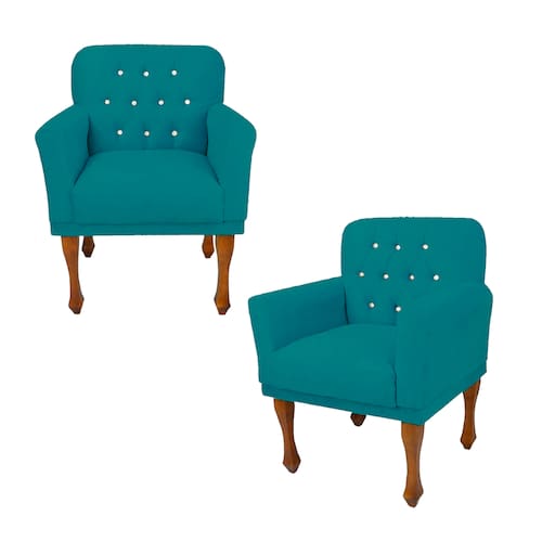 Jogo 2 Cadeira Poltrona Decorativa Para Clínica Anitta Suede Azul Turquesa LM DECOR