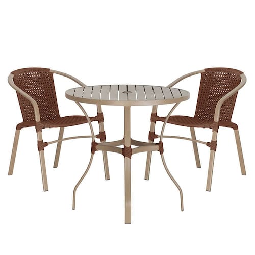 Composto por cadeiras de alumínio tramadas em corda náutica e uma elegante mesa com tampo ripado, esse conjunto une sofisticação e resistência em cada detalhe.
