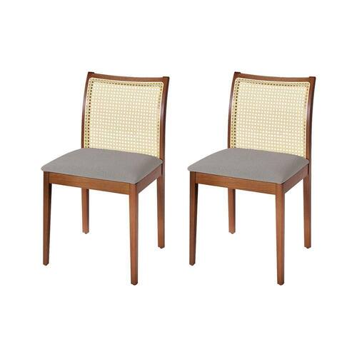 AS IMAGENS SÃO MERAMENTE ILUSTRATIVAS E PODEM SOFRER VARIAÇÕES DE COR E PEQUENOS DETALHES DE ACORDO COM O SEU MONITOR, ILUMINAÇÃO DO AMBIENTE E ATÉ MESMO A SUA PERCEPÇÃO VISUAL.Jogo 2 Cadeiras de Jantar Juliana Jequitibà Terra em Madeira MaciÃa Encosto Palha Linho Cinza