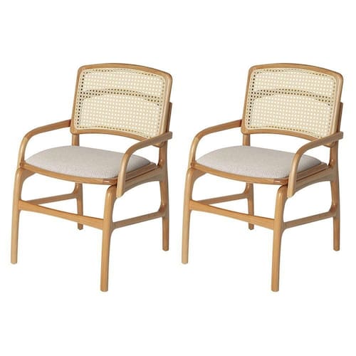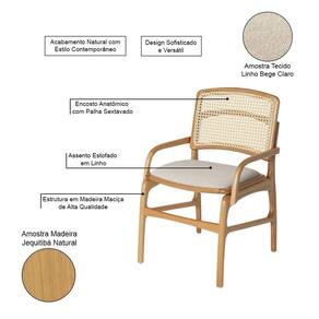 AS IMAGENS SÃO MERAMENTE ILUSTRATIVAS E PODEM SOFRER VARIAÇÕES DE COR E PEQUENOS DETALHES DE ACORDO COM O SEU MONITOR, ILUMINAÇÃO DO AMBIENTE E ATÉ MESMO A SUA PERCEPÇÃO VISUAL.Jogo 2 Cadeiras para Jantar FlorenÃa em Madeira Jequitibà Natural BraÃo Encosto Palha Linho Bege