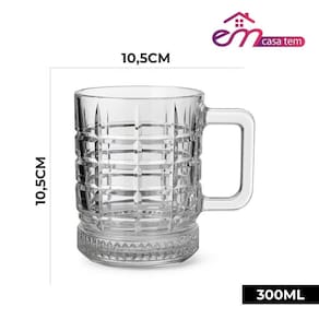 Desfrute de suas bebidas favoritas com o jogo de canecas de vidro Em Casa Tem Elusia, ideal para café e cappuccino no dia a dia. Com capacidade de 250 ml por unidade, oferece a medida adequada para porções individuais. O design com relevo em formas quadradas agrega um visual diferenciado enquanto o vidro não retém odores ou sabores, preservando as características da bebida. A superfície lisa facilita a higienização após o uso, trazendo mais praticidade para a rotina. Transparente e versátil, combina com diferentes estilos de cozinha e uso cotidiano.