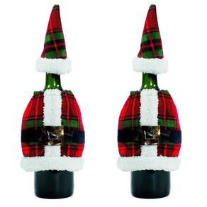 02 unidades Capa Garrafa Paletó e Gorrinho Xadrez Natal 15cm