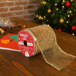 Sua estrutura com bordas aramadas flexíveis permite moldar facilmente os laços e ajustar o formato conforme o desejado, mantendo a firmeza e o volume. O acabamento dourado com glitter proporciona um efeito luxuoso, refletindo a luz e destacando qualquer composição natalina.