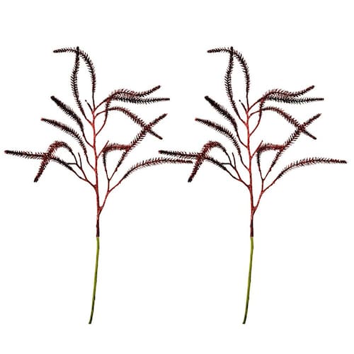 -02 Unidades Galho de Natal Decorativo –Pinheiro Vermelho com Glitter Brilhante, 57cm