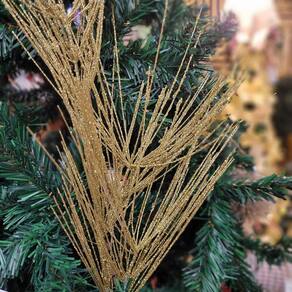 Transforme sua decoração natalina com este galho de espeto dourado, que une o brilho do glitter ao charme natural, criando um ambiente encantador e luxuoso!