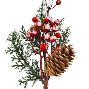 Pick Natalino Galho Decorativo com Folhagens, Pinhas e Cereja Nevada – 30cm