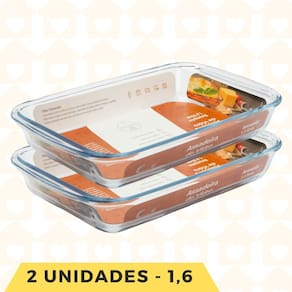 Jogo 2 Melhores Assadeiras Travessas Vidro 1,6L Transparente