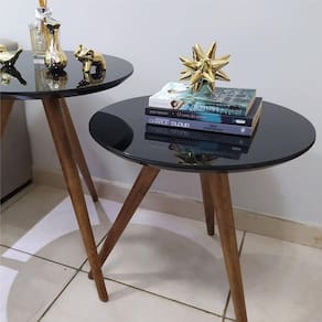 JOGO 2 MESA LATERAL LAQUEADA COM VIDRO