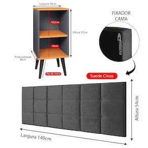 Jogo 2 Mesinhas Lateral Cama Pés Palito Nicho Porta Objetos Cabeceira Suspensa Estofada 1,40 Box Casal - Lojas RPM - Cinza