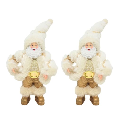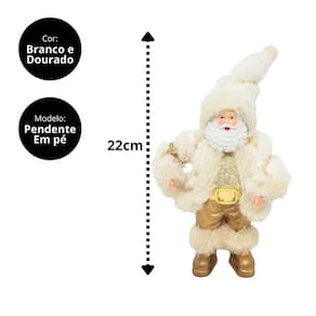 02 Unidades Papai Noel Mini Branco e Dourado Luxo 20cm