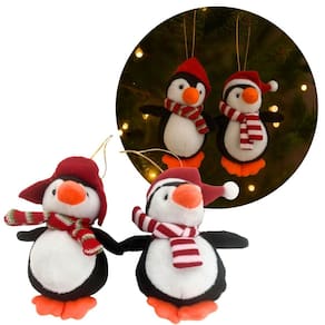 Deixe sua árvore de Natal ainda mais encantadora com este jogo de 2 pinguins decorativos em pelúcia prime, cuidadosamente confeccionados para adicionar um toque divertido e aconchegante à sua decoração natalina. Cada pinguim é decorado com gorrinho e cachecol em tons vermelhos festivos, realçando o contraste elegante entre as cores preto, branco e laranja.