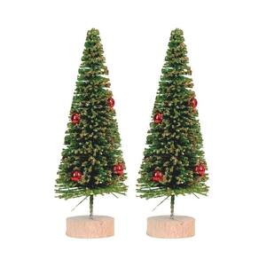 Kit 2 Mini Pinheiros Decor de Mesa com Bolas Vermelhas e Glitter Dourado 20cm
