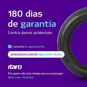 A Garantia Especial Itaro foi pensada para que você possa rodar com segurança e tranquilidade, com os pneus nascidos para contar histórias. São 180 dias contra Danos Acidentais, que impossibilitem o pneu de ser reparado. Ou seja, em casos de pequenas avarias, em que há conserto constatado por um profissional indicado pela PneuStore, a troca não é aplicada. Consulte o regulamento completo acessando a nossa página de garantias: Garantia Especial Itaro. Ean: 7896807423998