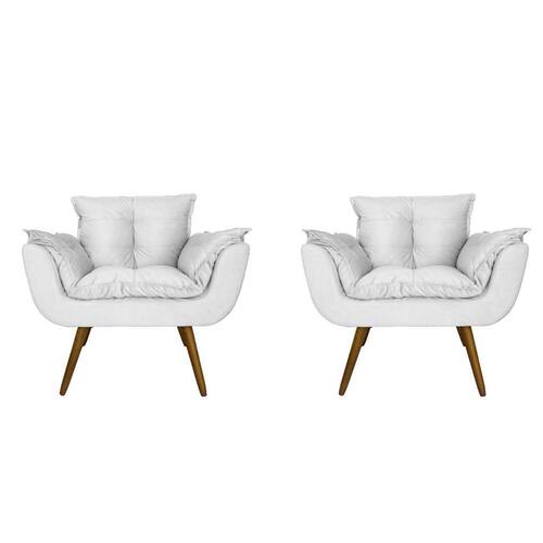 Jogo 2 Poltronas Decorativa Estofada Para Consultório Opala Suede Branco - LM DECOR